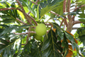 fruit à pain, boulettes de farine), une darne de daurade avec un gratin de fruit à pain,